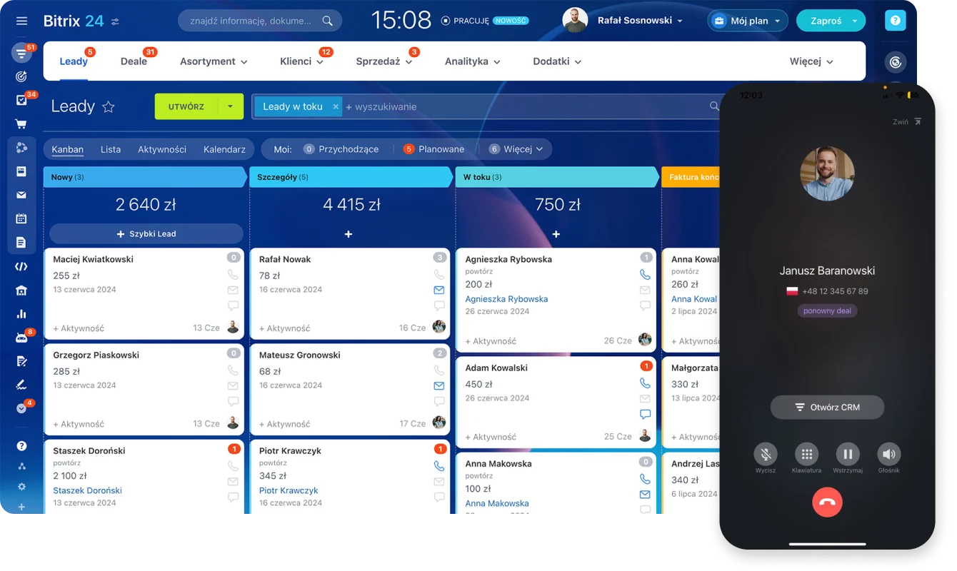 Leady, transakcje, klienci, faktury